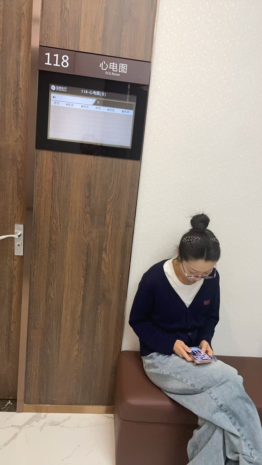 圖為員工等待心電圖檢查